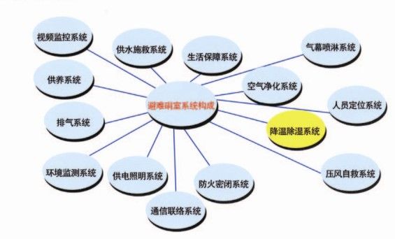 2、降溫除濕系統作為避難硐室的部件之一 ,可為硐室提供適宜的溫度和濕度,避難人員的生存舒適度。
